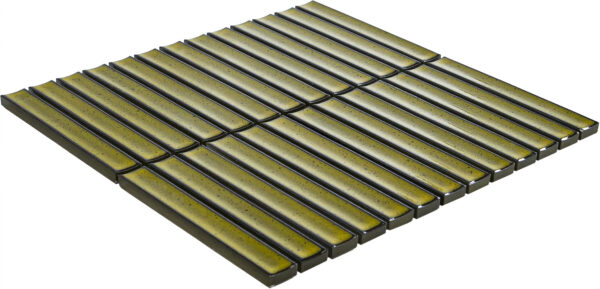 Deze mozaïek tegel wordt geleverd op vellen van 29,6×29,9 cm, de afmeting per mozaïeksteentje is 2×14,5 cm.